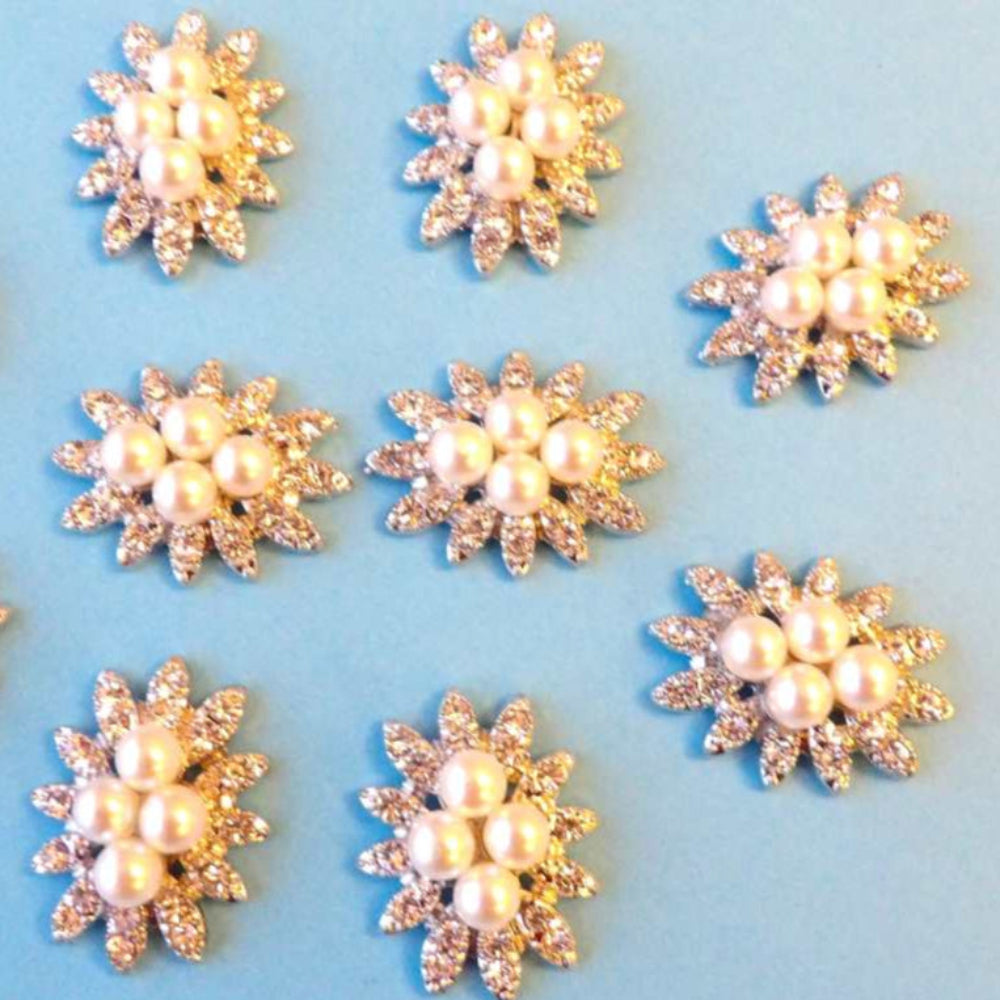 10 flower shape with sparkly diamantes and pearls flat back size 29mm x 22mm clearance