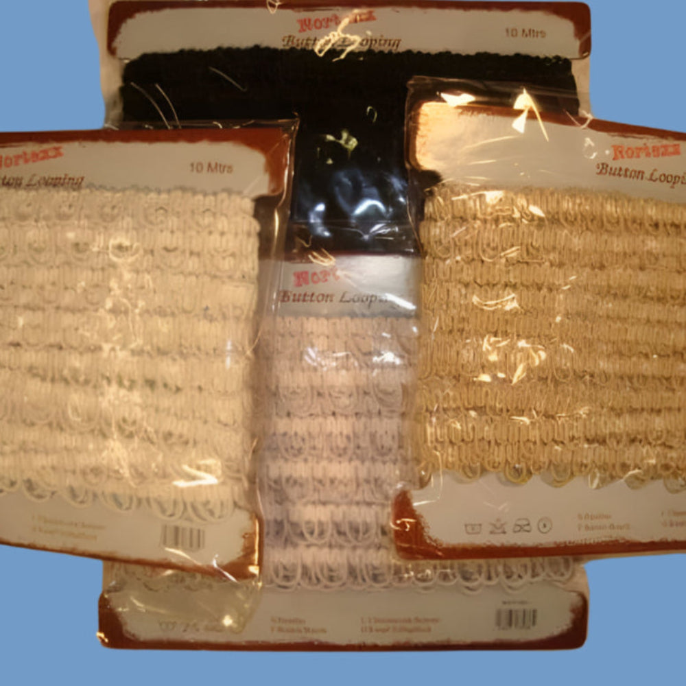 This 10 metre card of button looping offers a practical solution for creating secure button closures. Available in a range of colours, it allows you to coordinate perfectly with your sewing projects. The durable material ensures strong and reliable loops, ideal for garments, cushions, and accessories. Easy to work with, it is suitable for both professional and home sewing tasks, providing neat and functional finishes every time.