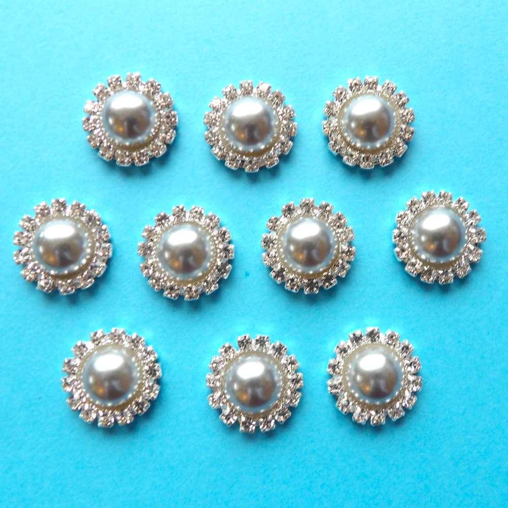 10 Round shape with sparkly diamantes and 12mm light blue pearl in centre flat back size 18mm clearance