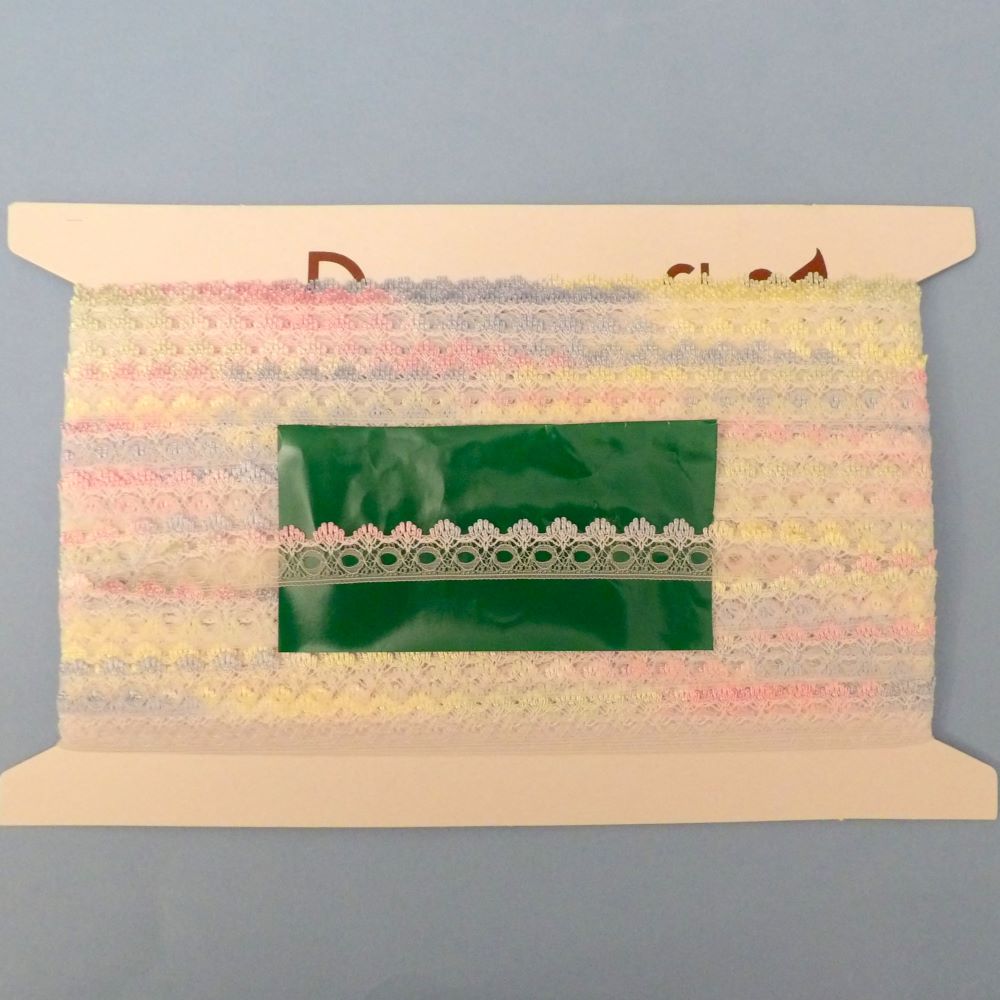44 Metres Of White / Multi Coloured Narrow Knitting In Lace 18mm Wide Clearance