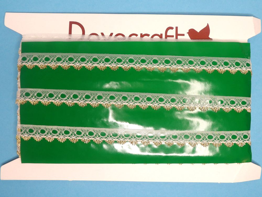 53 Metres Of White / Metallic Gold Narrow Knitting In Lace 18mm Wide Clearance