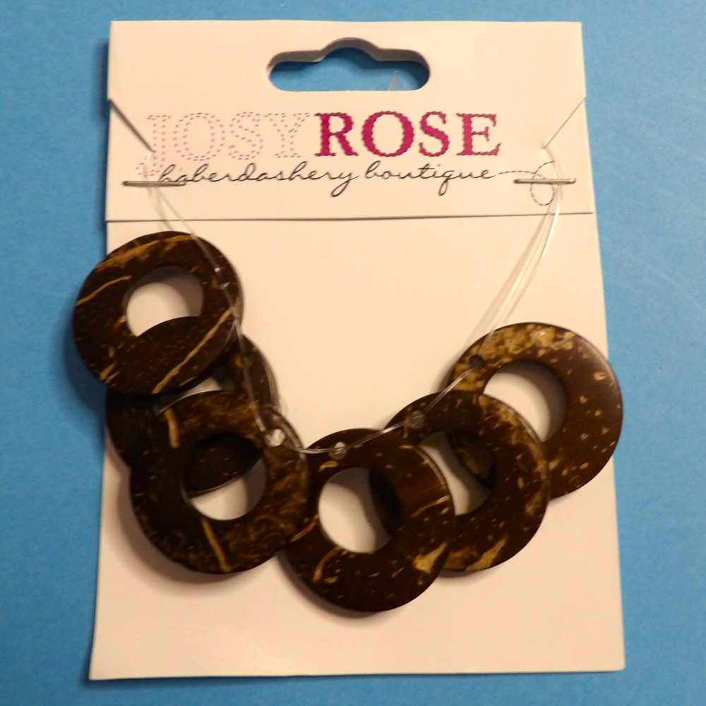 Card of 6 Dark Brown Circle beads 25mm Josy Rose Brand