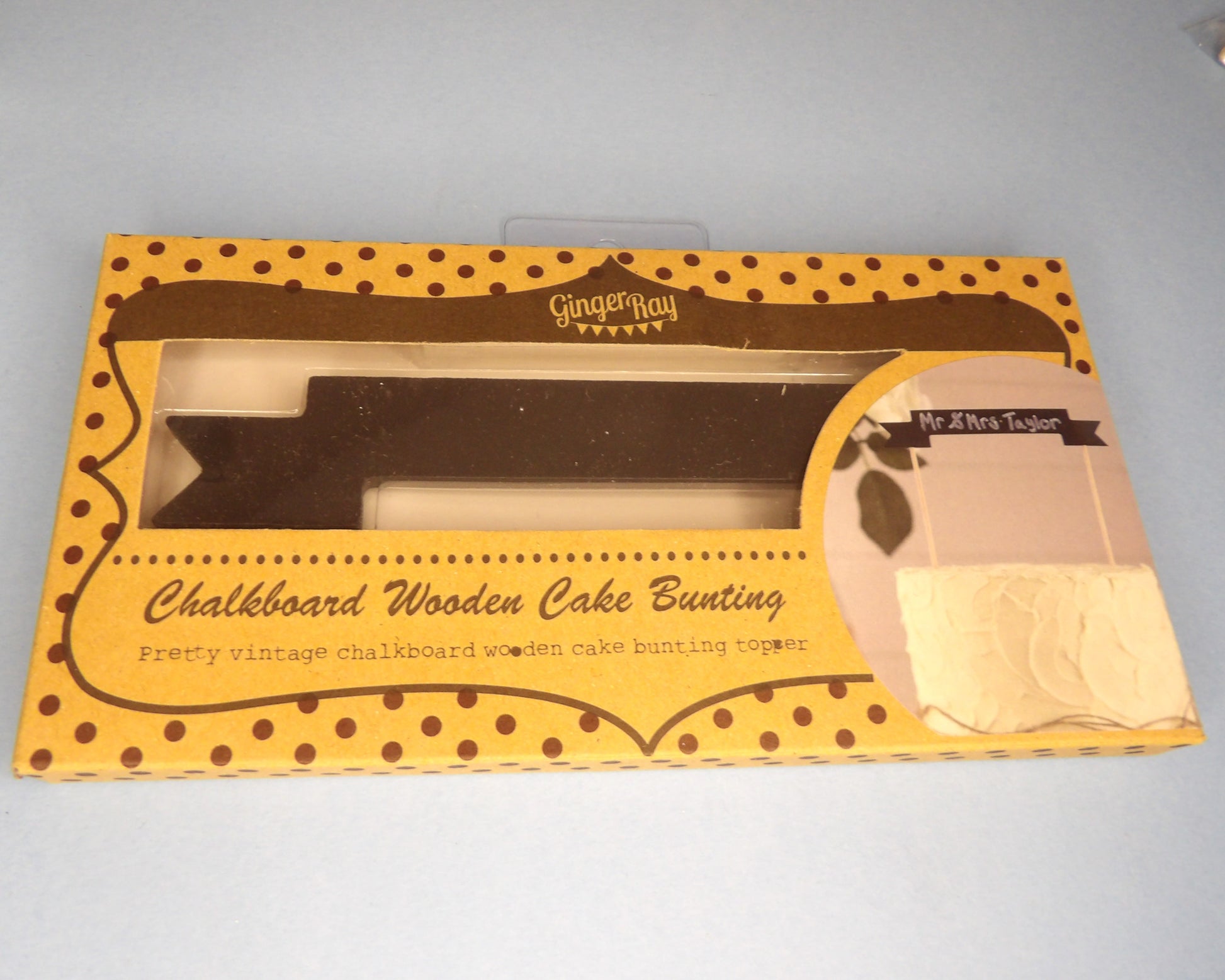 Cake topper from Ginger Ray, wooden black calk board to write your own message brown box clearance