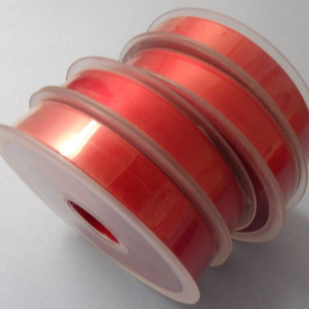 Only One lot Of 4 Reels Of Dark Red x 25 metre Reel Of 15mm Double Satin Ribbon Clearance